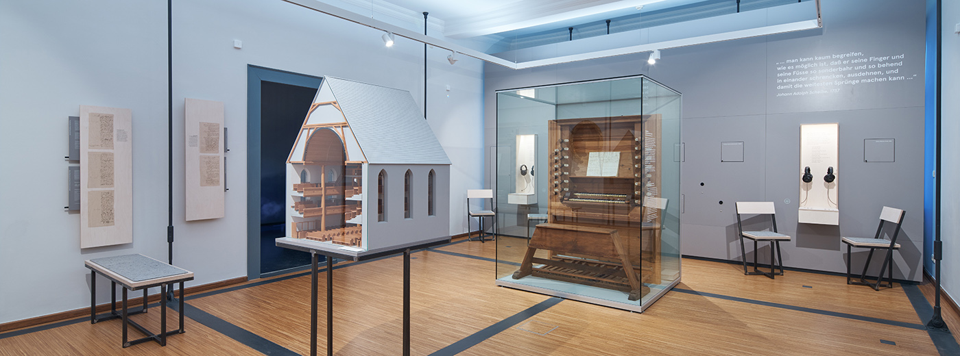 Die Präsentation beleuchtet Bachs familiäre Wurzeln in Arnstadt, sein Wirken an der Neuen Kirche sowie das religiöse Leben um 1700. Ein besonderes Highlight ist der originale Orgelspieltisch der Wenderorgel von 1703. Besucherinnen und Besucher können zudem frühe musikalische Werke aus Bachs Arnstädter Zeit hören. Ein eigener Raum widmet sich der Choralkomposition „Nun komm, der Heiden Heiland“ BWV 659 und ermöglicht durch visuell unterstützte Hörbeispiele ein tiefes Eintauchen in das zeittypische Verständnis des Lutherchorals.